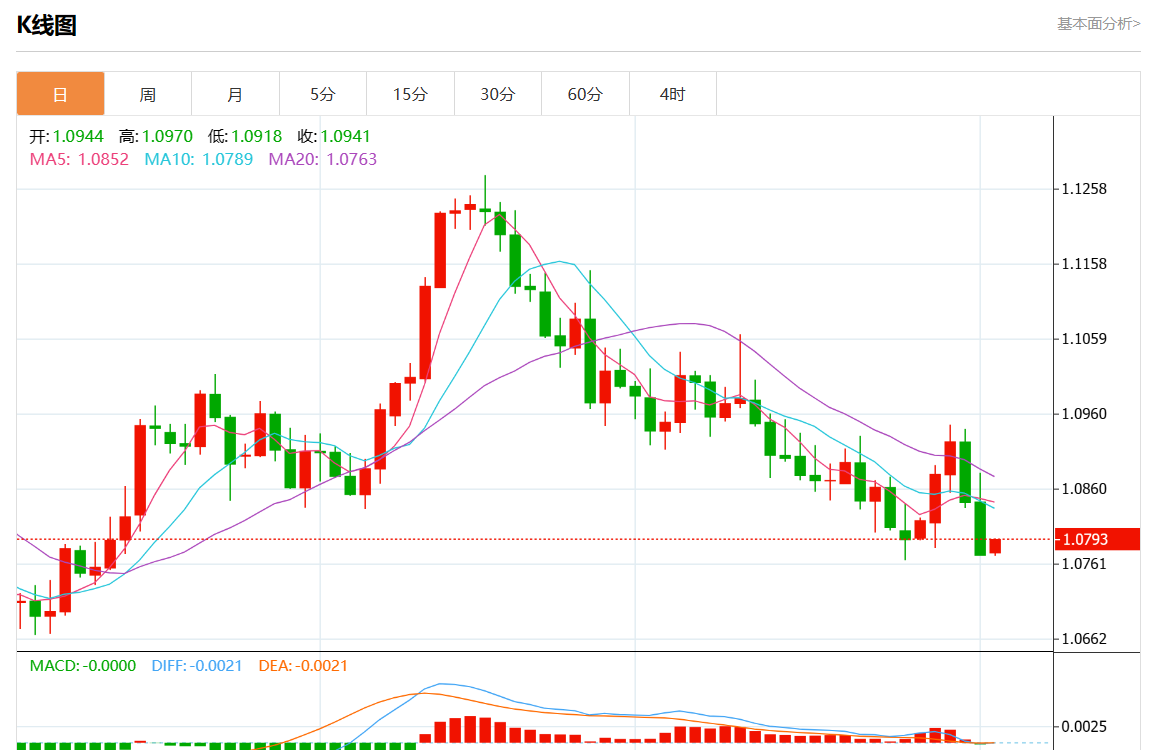 周一欧市盘中,欧元/美元最新报1.0796,日图涨0.21% 今日分析:空头头寸低于1.0810,目标在1.0750和1.0720。 技术点评:只要没有突破1.0810的阻力位,跌破1.0750的风险仍然很高。 支撑位:1.08551.08301.0810 阻力位:1.07501.07201.0700