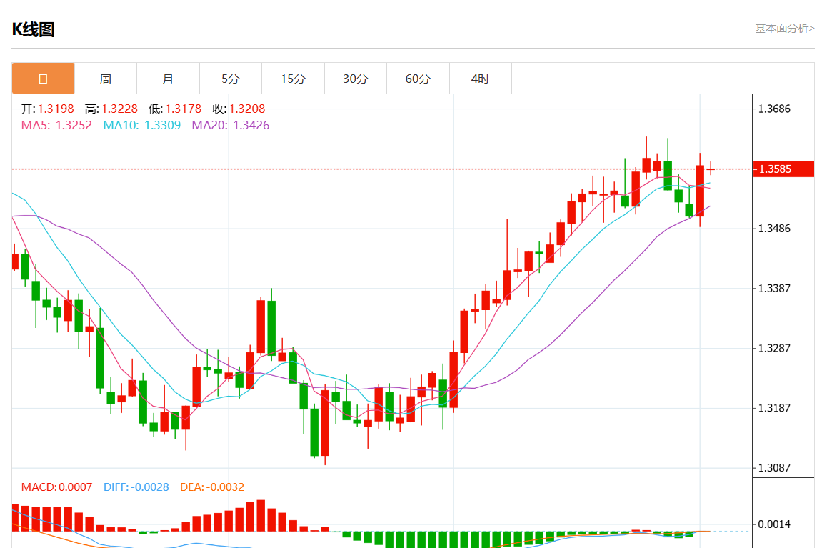 周一盘中,美元/加元报1.3587,跌幅0.03%。 今日分析:在1.3565上方建立多头头寸,目标在1.3615和1.3635。 技术点评:尽管不能排除继续合并的可能性,但其范围也应受到限制。 支撑位:1.36601.36351.3615 阻力位:1.35651.35401.3520