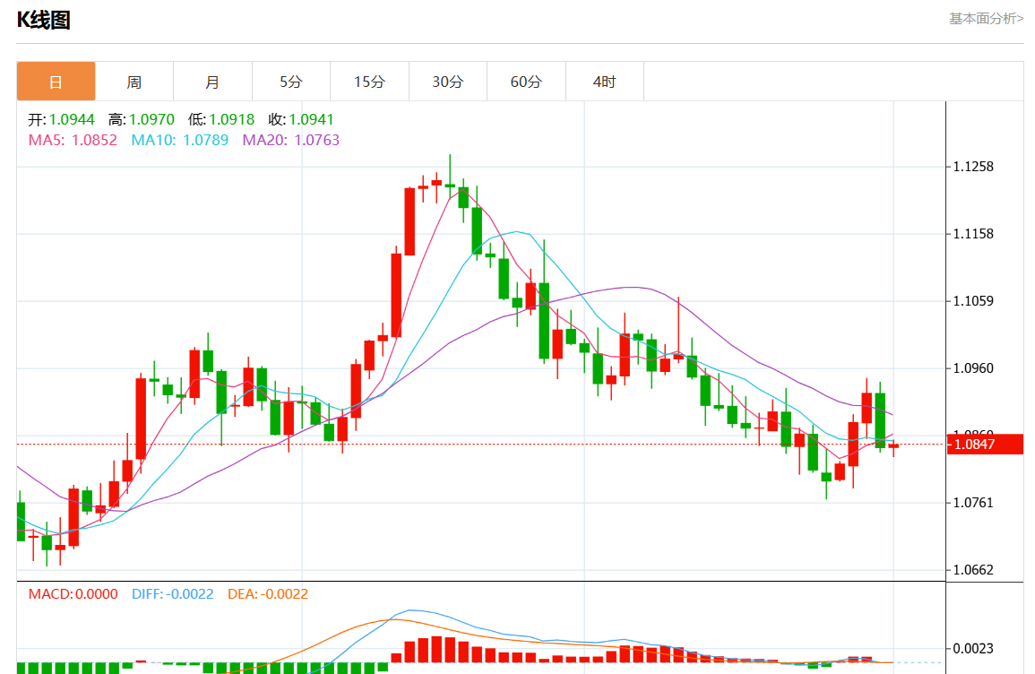 周五欧市盘中,欧元/美元最新报1.0848,日图涨0.05% 今日分析:空头头寸低于1.0870,目标在1.0820和1.0800延伸。 技术点评:RI涨跌互现。 支撑位:1.09151.09001.0870 阻力位:1.08201.08001.0780