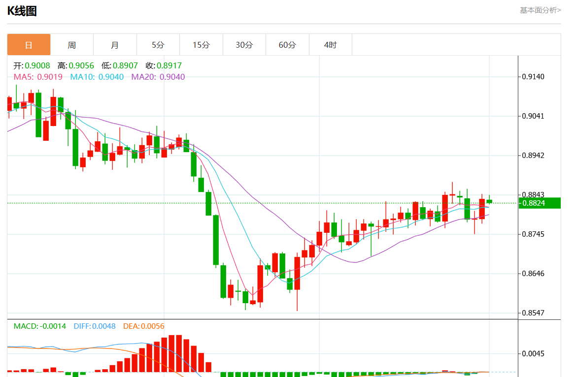 周五盘中,美元/瑞元报0.8824,跌幅0.10%。 今日分析:在0.8815上方建立多头头寸,目标在0.8855和0.8870。 技术点评:RI显示出上行势头。 支撑位:0.88850.88700.8855 阻力位:0.88150.88000.8790