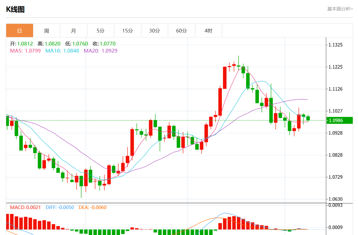 周二欧市盘中,欧元/美元最新报1.0978,日图跌0.22% 今日分析:空头头寸低于1.1010,目标在1.0960和1.0935延伸。 技术点评:只要没有突破1.1010的阻力位,跌破1.0960的风险仍然很高。 支撑位:1.10601.10401.1010 阻力位:1.09601.09351.0915