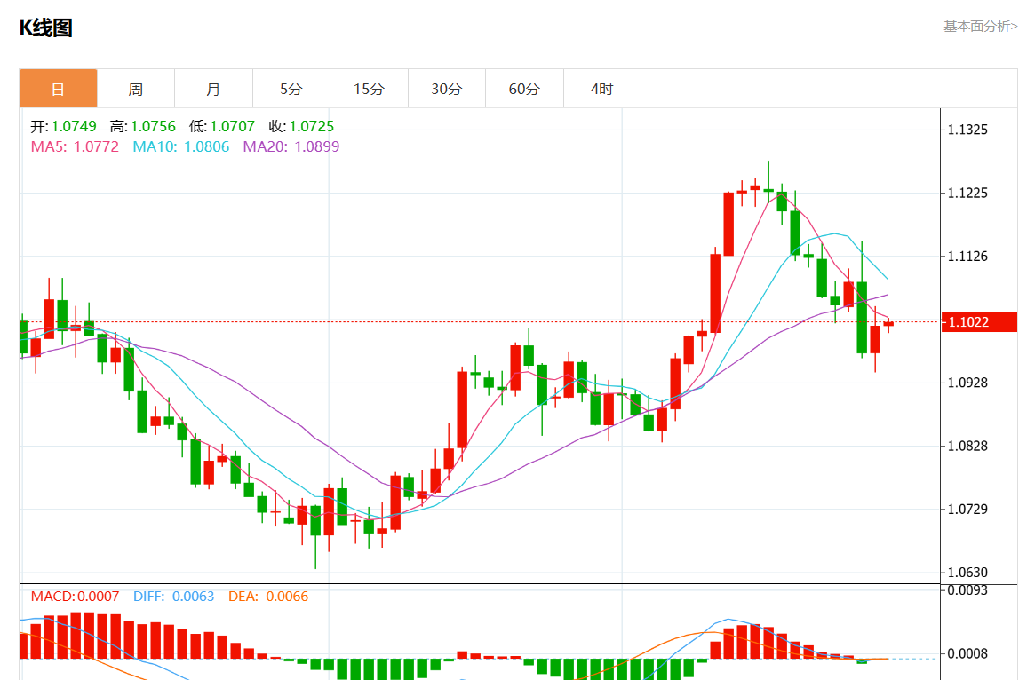 周二欧市盘中,欧元/美元最新报1.1015,日图跌0.01% 今日分析:在1.0990上方建立多头头寸,目标在1.1045和1.1070。 技术点评:RI显示出上行势头。 支撑位:1.11001.10701.1045 阻力位:1.09901.09651.0940