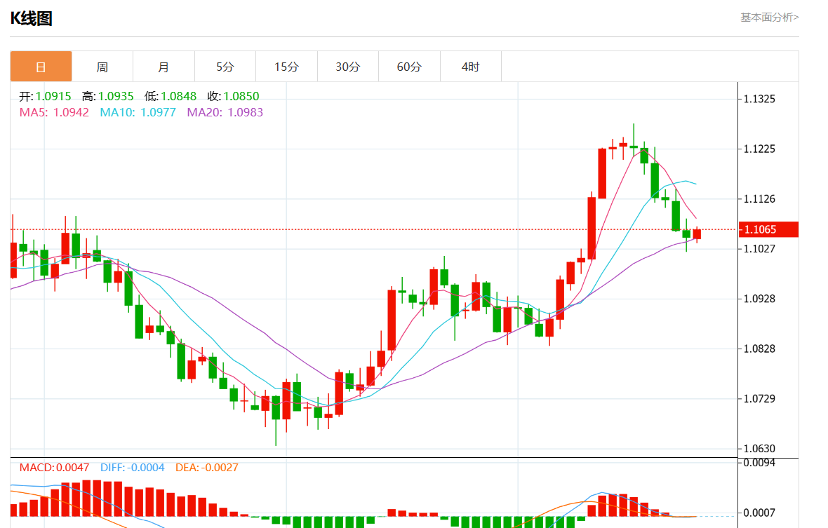 周二欧市盘中,欧元/美元最新报1.1068,日图涨0.16% 今日分析:在0.6590之上,看涨,目标价位为0.6900,然后为0.7000。 技术点评:RI技术指标运行趋势复杂,倾向于上涨。 支撑位:0.71400.70000.6900 阻力位:0.65900.64550.6360