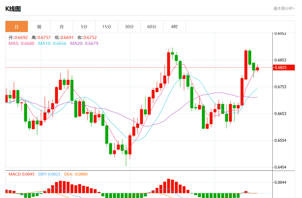周二盘中,美元/加元最新报0.6816,日图涨0.01% 今日分析:在0.6800上方建立多头头寸,目标在0.6845和0.6860。 技术点评:0.6800的支撑基础已经形成,并允许暂时稳定。 支撑位:0.68750.68600.6845 阻力位:0.68000.67850.6770