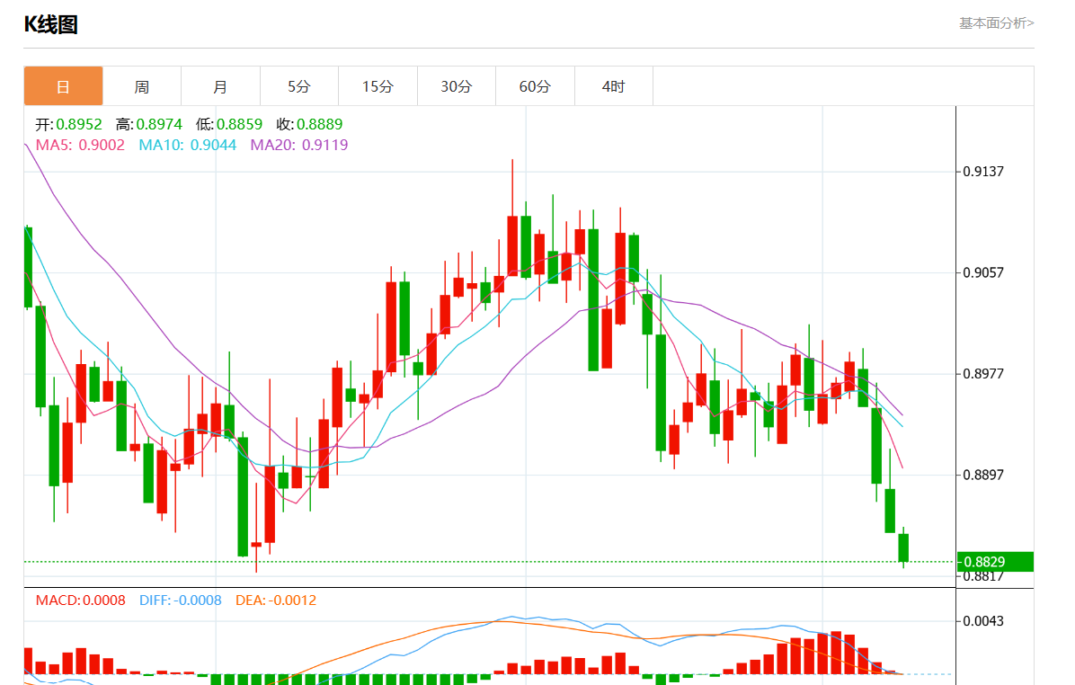 周二盘中,美元/瑞郎最新报0.8827,日图跌0.28% 今日分析:空头头寸低于0.8870,目标为0.8830和0.8815。 技术点评:RI看跌,并呼吁进一步下行。 支撑位:0.89000.88850.8870 阻力位:0.88300.88150.8800