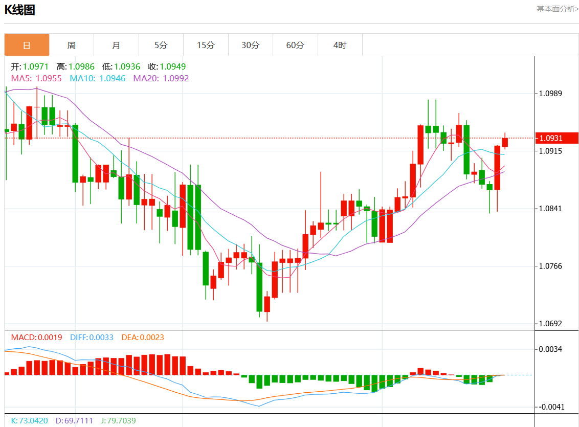 周四欧市盘中,欧元/美元最新报1.0933,日图涨0.11%. 今日分析:在1.0900之上,看涨,目标价位为1.0960,然后为1.0980。 技术点评:RI技术指标向上运行。 支撑位:1.10001.09801.0960 阻力位:1.09001.08751.0855 (亚汇网编辑:静香)