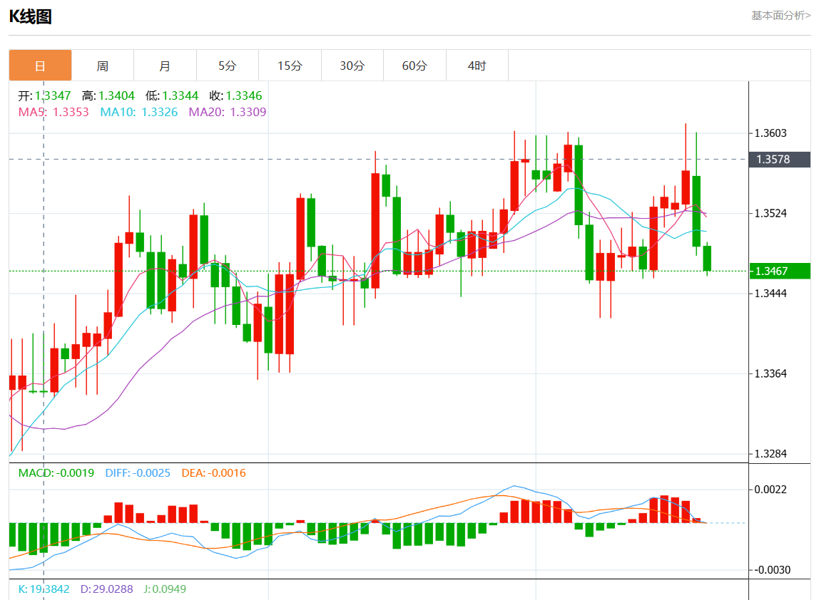 周四盘中,美元/加元报1.3464,跌幅0.20%。 今日分析:在1.3505之下,看跌,目标价位为1.3455,然后为1.3420。 技术点评:RI技术指标向下运行。 支撑位:1.35501.35301.3505 阻力位:1.34551.34201.3400 (亚汇网编辑:静香)