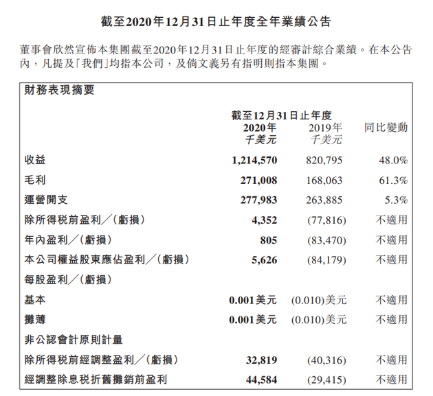 3月24日下午消息,雷蛇发布2020年度业绩报告。报告显示,2020年,雷蛇营收12.15亿美元,同比增长48.0%;归母净利润562.6万美元,上年同期亏损8417.9万美元。
