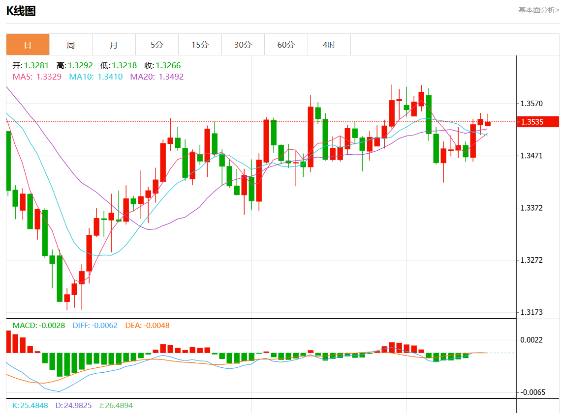 周一盘中,美元/加元报1.3535,跌幅0.04%。 今日分析:在1.3525之上,看涨,目标价位为1.3550,然后为1.3565。 技术点评:超短线(当日内)技术指标运行趋势复杂,应谨慎操作。 支撑位:1.35901.35651.3550 阻力位:1.35251.35051.3480 (亚汇网编
