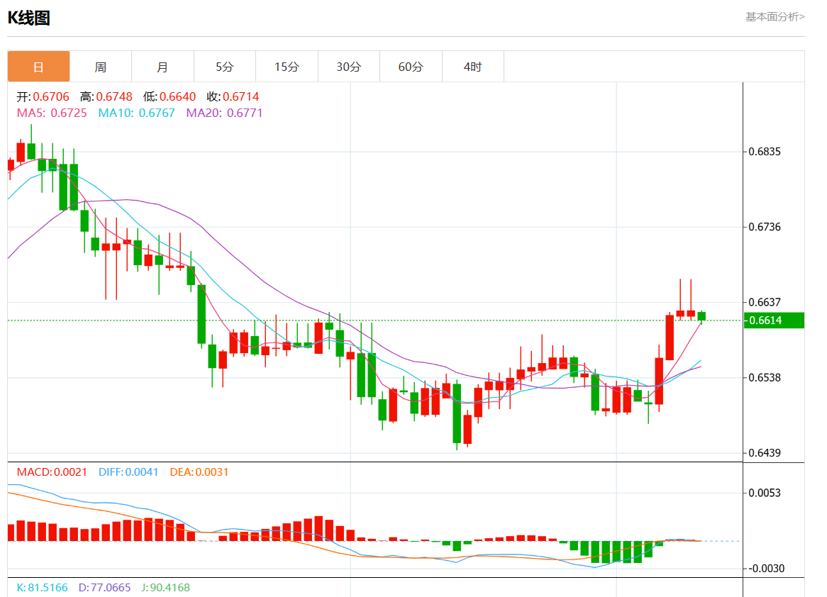 周一盘中,澳元/美元报0.6613,跌幅0.18%。 今日分析:在0.6640之下,看跌,目标价位为0.6590,然后为0.6565。 技术点评:RI技术指标运行趋势复杂,倾向于下跌。 支撑位:0.66800.66650.6640 阻力位:0.65900.65650.6540 (亚汇网编辑:静香)