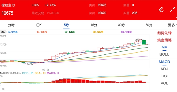 9月25日消息,国内商品期货午盘涨跌不一,橡胶、动力煤、沪银及苹果期货涨幅居前,其中橡胶主力涨逾2%领涨。截至收盘,橡胶主力合约涨2.47%,报12675元/吨。 从目前基本面来看,近期版纳割胶正常,原料供应趋于正常,境外替代种植指标橡胶陆续入关,供应紧张局面有所缓解;海南产区降雨天气反复,原料胶水产出