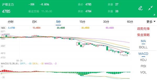 9月24日,国内商品期货午盘大面积飘绿,沪银、棕榈、沪铝及菜籽油期货跌幅靠前,其中沪银期货延续大跌走势,截至收盘跌6.92%,报4785元/千克。 国信期货指出,市场仍忧虑疫情反弹,美元指数回升延续,打压贵金属价格。新一轮财政刺激法案年内出台希望减弱,通胀预期支撑不足,而美联储未给出更多宽松信号的情况