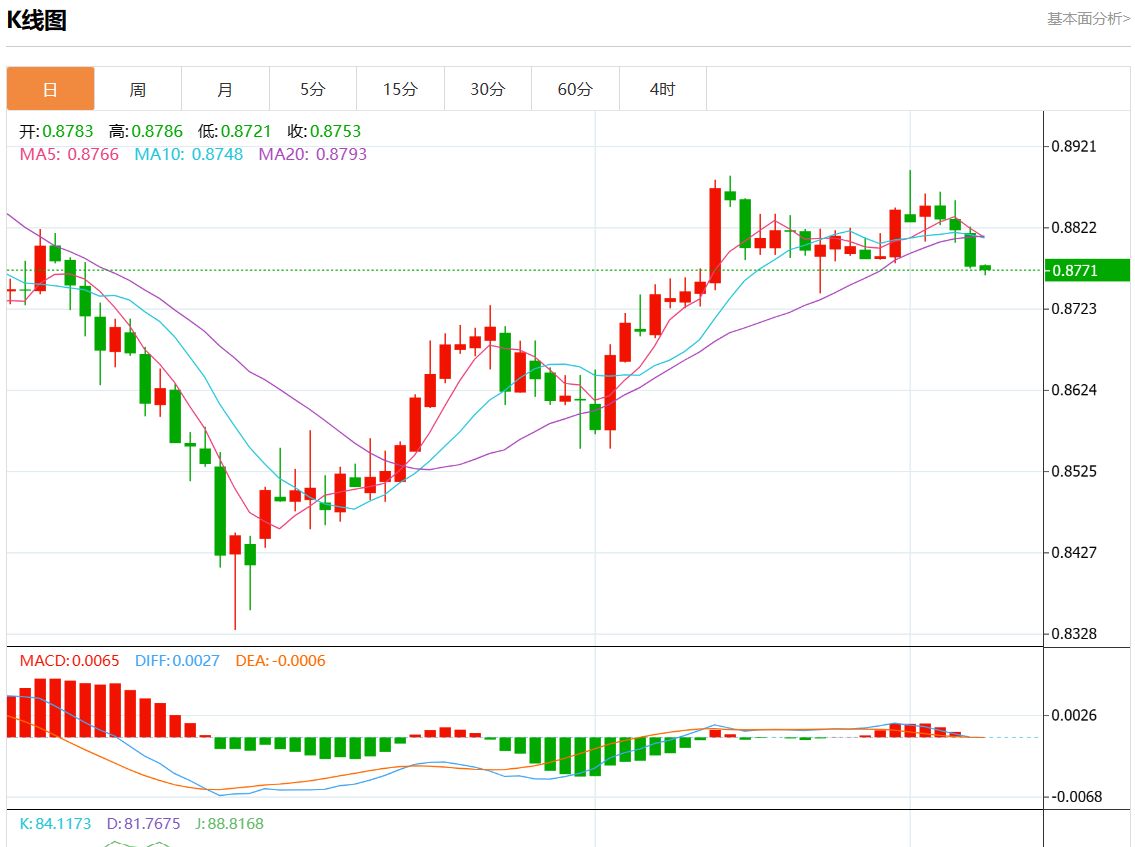 周五盘中,美元/瑞元报0.8773,跌幅0.05%。 今日分析:在0.8800之下,看跌,目标价位为0.8755,然后为0.8740。 技术点评:只要0.8800阻力位不被突破,向下跌破0.8755位置的风险很高。 支撑位:0.88300.88150.8800 阻力位:0.87550.87400.8725 (亚