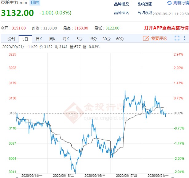 今日美豆油期货价格查询(2020年09月21日) 产品名称 开盘价 昨收价 美豆油当月连续 35.12 35.14 美豆油2103 35.00 35.07 美豆油2101 35.05 35.12 美豆油2012 35.12 35.14 美豆油2010 35.17 35.23