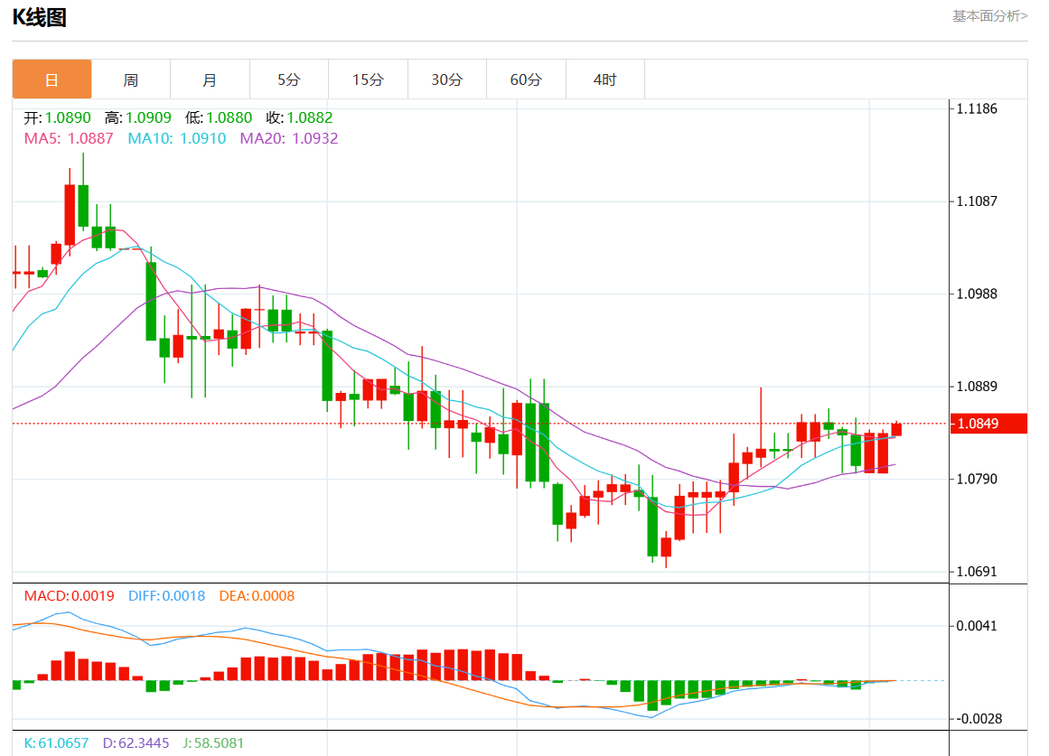 周一欧市盘中,欧元/美元最新报1.0846,日图涨0.06%. 今日分析:在1.0820之上,看涨,目标价位为1.0855,然后为1.0870。 技术点评:RI技术指标向上运行。 支撑位:1.08851.08701.0855 阻力位:1.08201.08051.0795 (亚汇网编辑:静香)