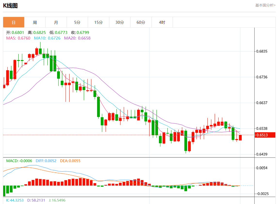 周五盘中,澳元/美元报0.6508,涨幅0.17%。 今日分析:在0.6490之上,看涨,目标价位为0.6525,然后为0.6540。 技术点评:RI技术指标向上运行。 支撑位:0.65550.65400.6525 阻力位:0.64900.64800.6470 (亚汇网编辑:静香)