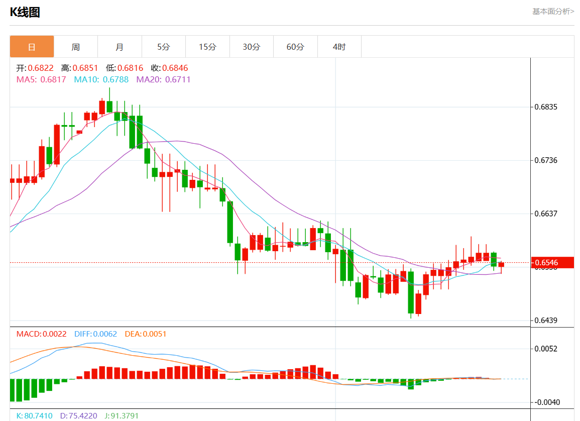 周二盘中,澳元/美元报0.6548,涨幅0.12%。 今日分析:在1.3525下方做空,目标在1.3490和1.3475。 技术点评:只要1.3525是阻力位,请寻找带有看跌偏见的震荡价格走势。 支撑位:1.35601.35401.3525 阻力位:1.34901.34751.3460 (亚汇网编辑:静香