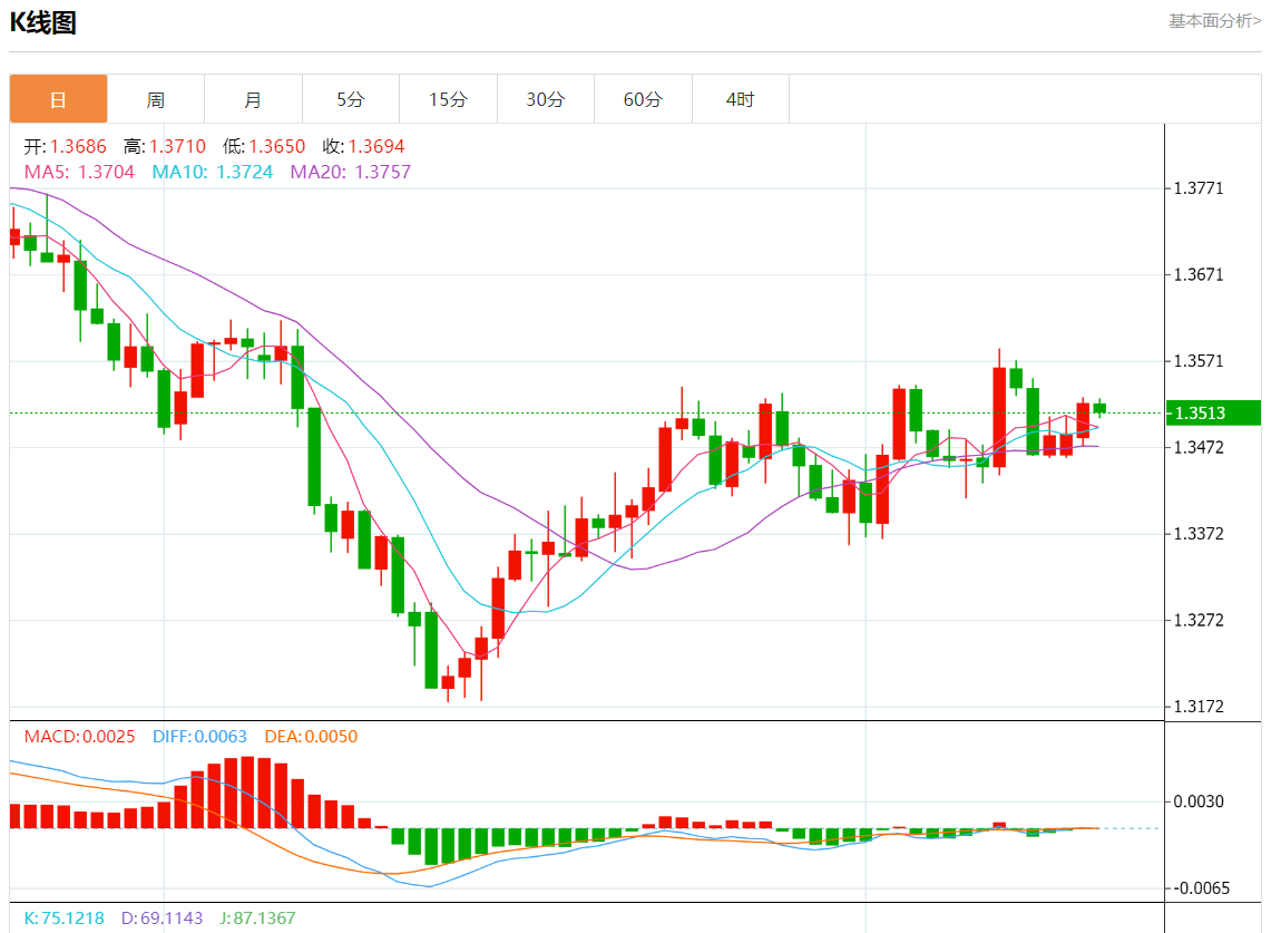 周三盘中,美元/加元报1.3513,跌幅0.07%。 今日分析:在1.3530下方做空,目标在1.3490和1.3470. 技术点评:RI显示下行势头。 支撑位:1.35651.35501.3530 阻力位:1.34901.34701.3460 (亚汇网编辑:静香)