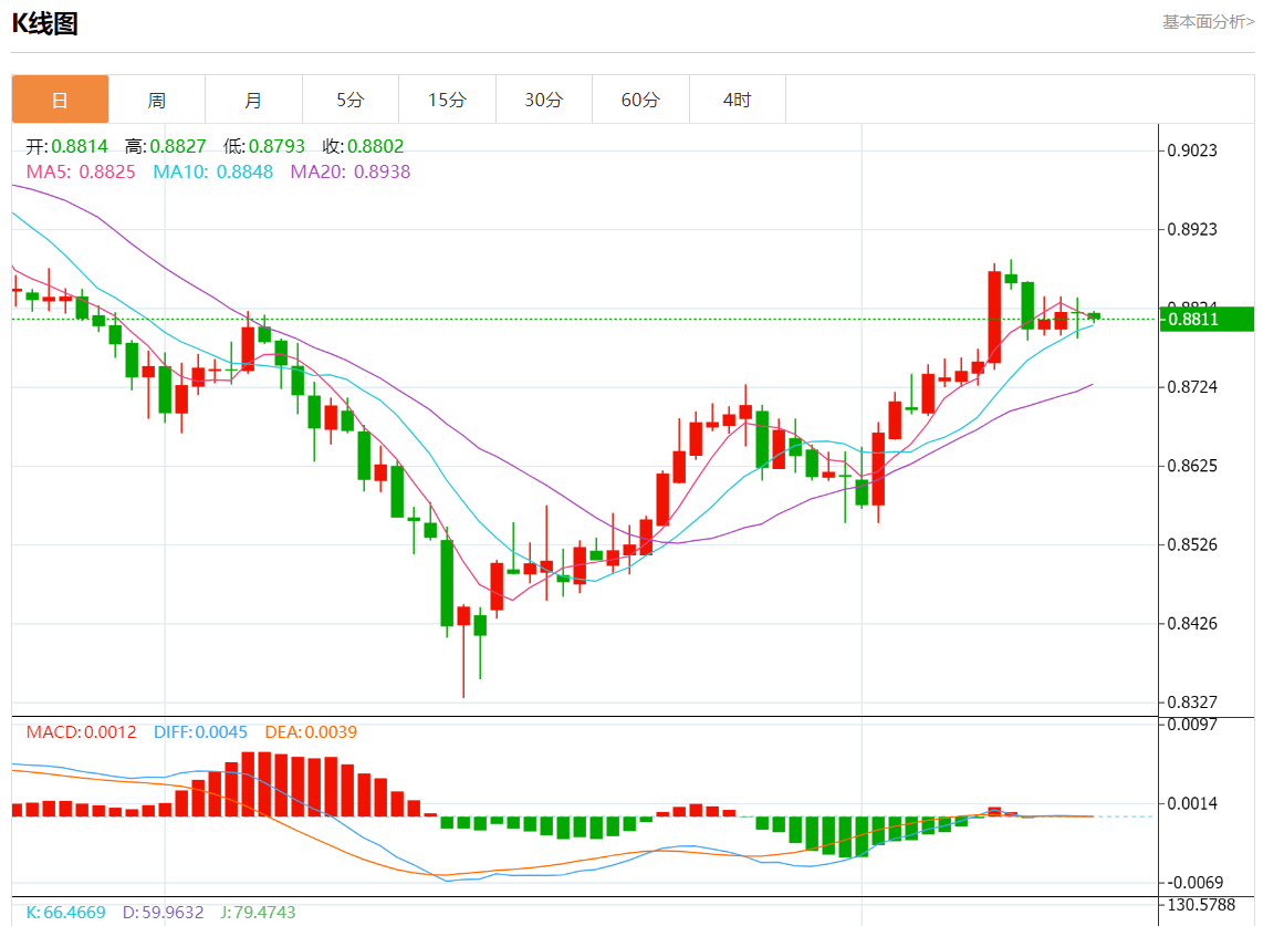 周三盘中,美元/瑞元报0.8811,跌幅0.08%。 今日分析:在0.8820下方做空,目标在0.8800和0.8785。 技术点评:RI涨跌互现。 支撑位:0.88550.88400.8820 阻力位:0.88000.87850.8770 (亚汇网编辑:静香)
