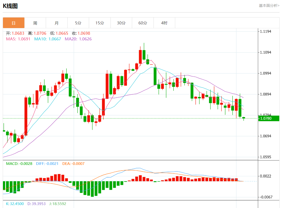 周一欧市盘中,欧元/美元最新报1.0781,日图跌0.06%. 今日分析:在1.0810下方做空,目标在1.0745和1.0720. 技术点评:只要没有突破1.0810的阻力位,跌破1.0745的风险仍然很高。 支撑位:1.08701.08401.0810 阻力位:1.07451.07201.0700 (亚汇网编