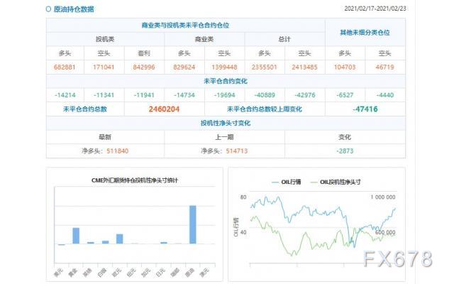 CTFC持仓数据:美国商品期货交易委员会(CFTC)周五(2月26日)发布的报告显示,截止至2月17日至2月23日当周:原油看多意愿降温;原油投机性净多头减少2873手合约,至511840手合约,表明投资者看多原油的意愿降温。 1、投机者持有的原油投机性净多头减少2873手合约,至511840手合约,表明投资者看多原油的意愿降温