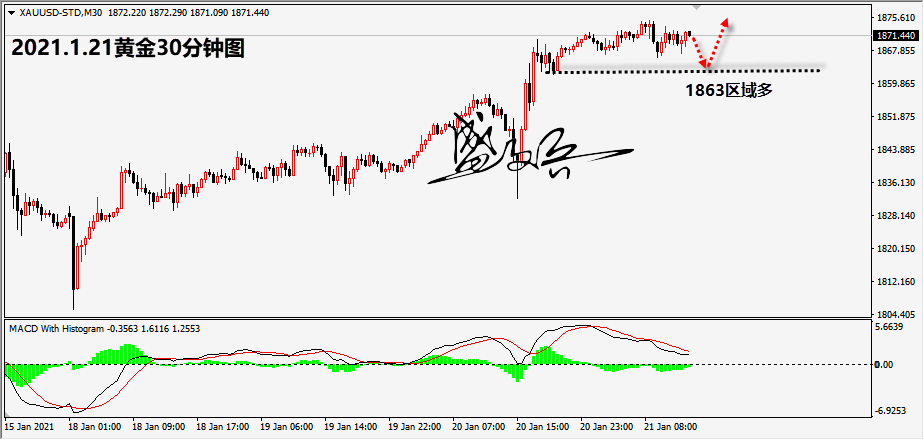黄金今日的走势相较于昨日来说,略显平静,但是依然站稳在1863盘整支撑上方,还是维持看涨思路不变,早盘1868多如期中上涨,欧盘回落再次干多了,当前行情整体变动不大,继续持多看涨! 黄金昨日剧烈震荡,最终选择向上突破,今日整天维持在1863上运行,虽然没有继续大幅拉升,但多头依然非常强势,震荡是为了