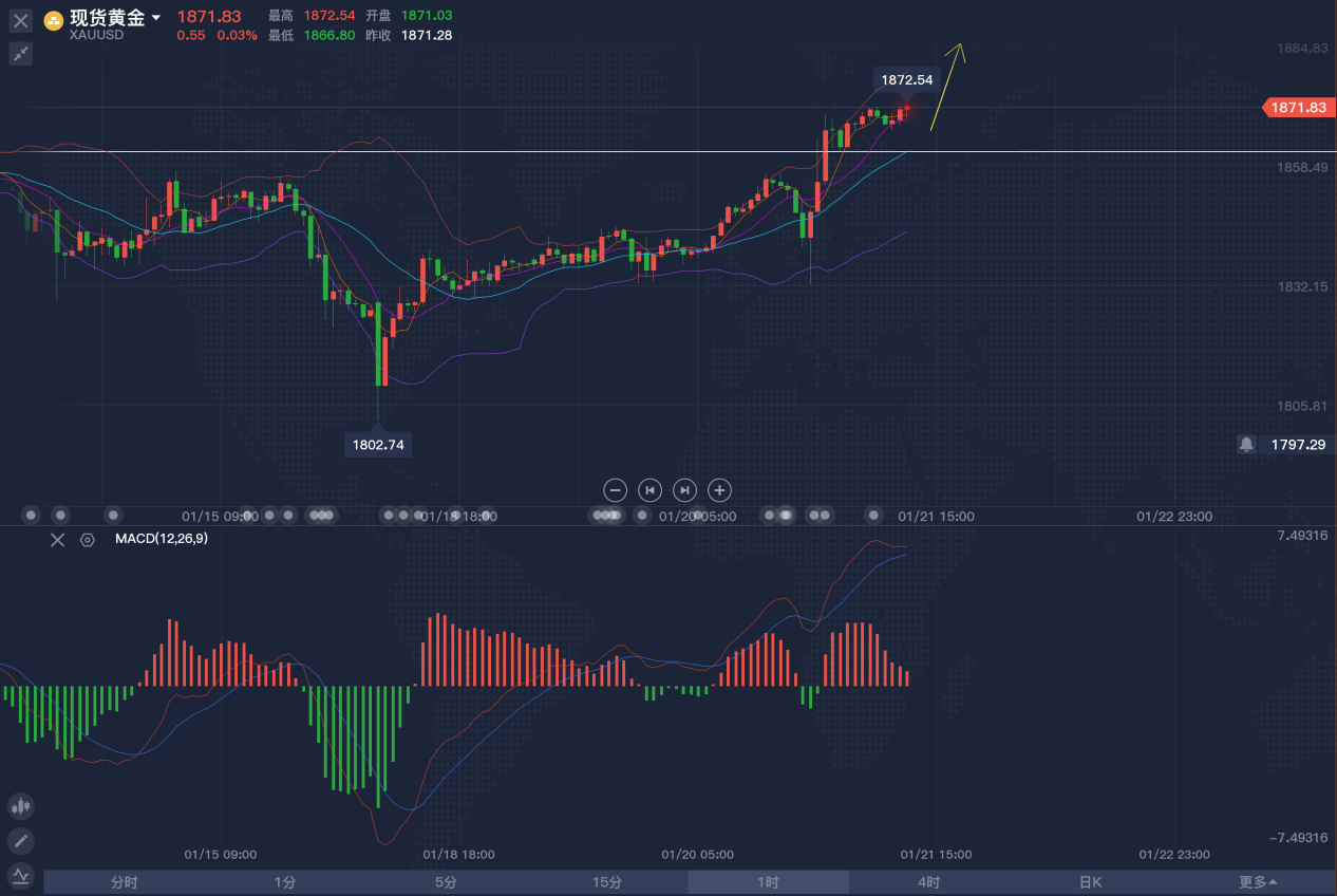 昨天周三,美国总统正式交接,川普时代宣告落幕,拜登宣誓就职,市场预期美国很快将宣布额外的财政刺激措施,黄金大起大落剧烈洗盘。亚欧盘慢牛上涨,美盘前黄金急跌,美盘后直接走深V反转,行情巨幅过山车,包括近几天的行情其实都是这样,一波洗盘之后再拉升,无时不刻不在考验大家的耐心。 昨日黄金大幅杀跌