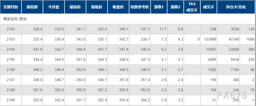 周三(1月20日)上海原油价格创五个交易日新高,主力合约2103终盘收于342.7元/桶,涨7.3元/桶,涨幅2.18%。耶伦讲话支持拜登的大规模刺激计划,市场乐观地认为,更多的政府刺激措施最终将提振全球经济增长,OC秘书长表示,他对石油市场今年将从新冠大流行带来的需求暴跌中复苏持谨慎乐观态度,而IA下调了2021年石油需