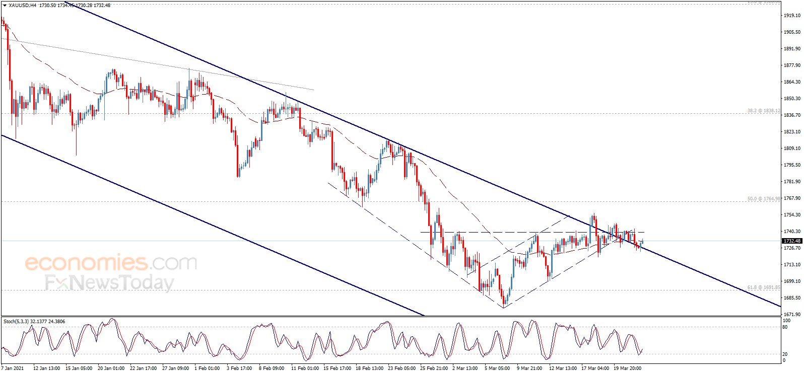 周三(3月24日)亚市尾盘,现货黄金温和上涨,目前位于1731美元/盎司附近。知名财经资讯网站cooi.co周三最新撰文,对日内黄金走势进行前瞻分析。 cooi.co在文章中写道,金价维持在关键支撑位1727.00美元/盎司上方。今日交易开始后金价呈看涨倾向,并试图远离上述水平。从4小时图来看,随机指标传递正面信