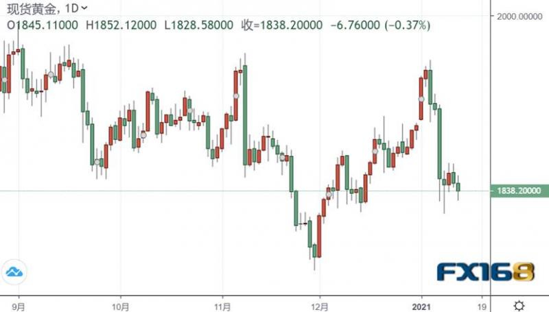 周三(1月13日)美元恢复从近三年低点反弹的普涨势头,市场寄望当选总统拜登领导的下届政府将增加政府支出以及新冠病毒危机后经济将持续复苏。现货黄金尾盘一度跌至1842.18美元/盎司,较日高回落逾20美元,美元走强、风险偏好情绪抑制了黄金的上行空间。油价从11个月高位回落,在此前火热上涨后稍事喘息,美国成品