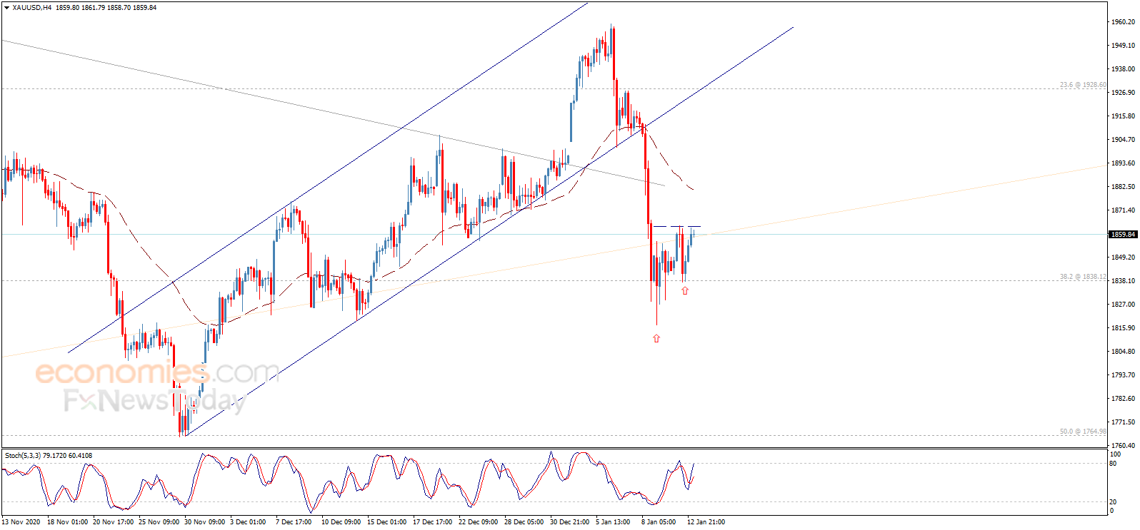 周三(1月13日)亚市尾盘,现货黄金维持升势,现报1861美元/盎司水平附近。知名财经资讯网站cooi.co周三撰文,对日内欧元/美元、英镑/美元、美元/日元和黄金走势进行前瞻分析。 根据cooi.co,假如攻克关键水平1863.80美元/盎司,金价有望进一步大涨。 以下是cooi.co所撰文章的主要内容: