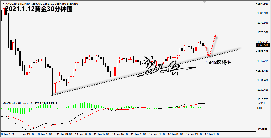 黄金 周二白盘随着美元指数从高位震荡回落修正,黄金震荡走强,最高触及1863.8美元的高位。晚盘重点关注美联储官员博斯蒂克和布雷纳德德讲话。本周的重点是周四拜登将公布大规模刺激经济的财政政策细节。 黄金白盘震荡向上,从当前走势来看,黄金日内涨幅已经超过1%;说明多头走势必将强劲。但是