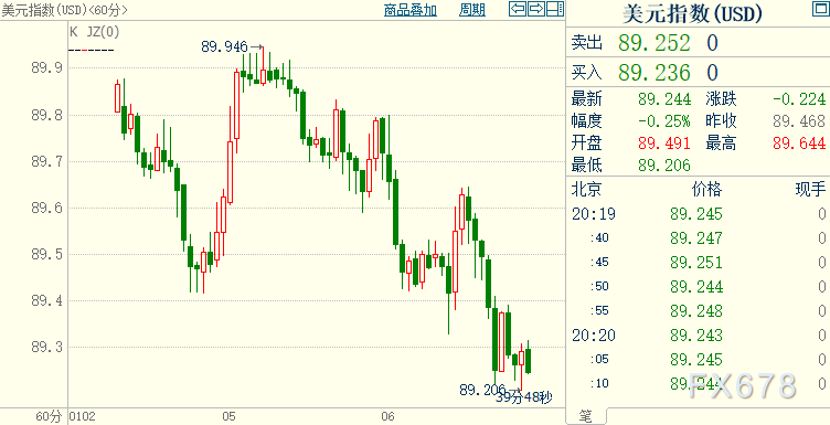 周三(1月6日)晚间,金市突现大单砸盘,COX最活跃黄金期货合约在北京时间1月6日20:43-20:44两分钟内买卖盘面瞬间成交8153手,交易合约总价值逾15.7亿美元。 金价短线挫逾20美元,最低触及1925美元,较日高跌超30美元,之后回升至1940关口上方。 欧盘美元指数一度跌破前低89.229,创2018年3月以来新低