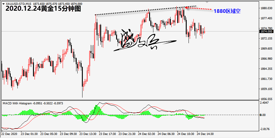 黄金 黄金完全符合笔者今日的预期。金价在1880一线承压后回落,笔者今日给出逢高参与空头的思路,完全正确,并且到达笔者参与空头的区域。只有根据笔者策略参与空头着成功获利10美元。 明天是圣诞节,市场将于25日2点左右开始休市。但是晚上美国众议院对修改后的刺激方案投票表决,投资者还需要关注。