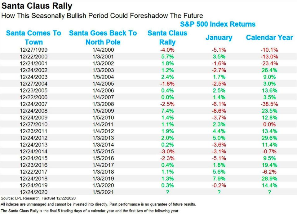 和A股具有“春节行情”一样,美股在圣诞节前后也有“圣诞行情”。 针对美股的“圣诞行情”,股票交易者年鉴创始人YalHirch创建了一个名为“圣诞老人拉力赛”的统计方法,用来描述圣诞节前后7天(每年的最后两个交易日以及新一年的前两个交易日)的股市增长率。 而这样的称呼,寓意着圣诞老人驾着雪橇,
