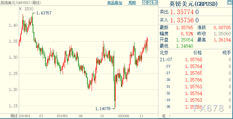 周四(12月24日)欧市盘中,英镑兑美元刷新五个交易日高位1.3619,距离2018年5月来高点1.3624不远,据天空新闻网报道,据悉英国议会将于12月30日批准脱欧协议,强化了市场对英国与欧盟将在日内达成原则性协议的乐观预期,不过据外媒最新消息显示,英国脱欧协议被搁置,双方都在渔业问题上讨价还价,官员们不清楚脱欧协