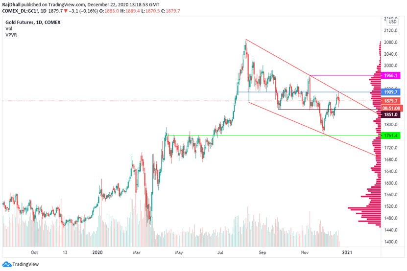 周二(12月22日)欧市盘中,现货黄金扳回日内跌幅,刚刚重返1880美元上方。 据最新消息,特朗普正式签署了联邦支出和刺激法案。特朗普签署了7天期的政府支出法案,以允许政府继续运作至12月28日。 美国国会周一通过了一项8920亿美元的新冠疫情援助法案,在数月未采取行动后终于为美国受疫情重创的经济提供