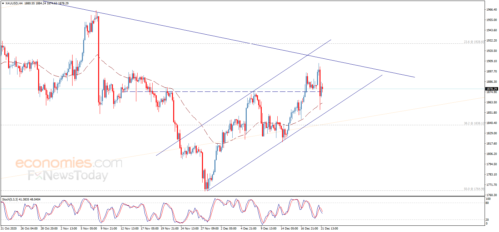 周二(12月22日)亚市早盘,现货黄金小幅上涨,金价现报1879美元/盎司附近。知名财经网站cooi.co撰文,对金价后市走势进行分析。 金价周一小幅下跌,美国经济刺激计划为金价提供支撑。现货黄金收报1876.74美元/盎司,下跌4.46美元或0.24%,盘中最低触及1854.93美元/盎司。 cooi.co在文章中写道
