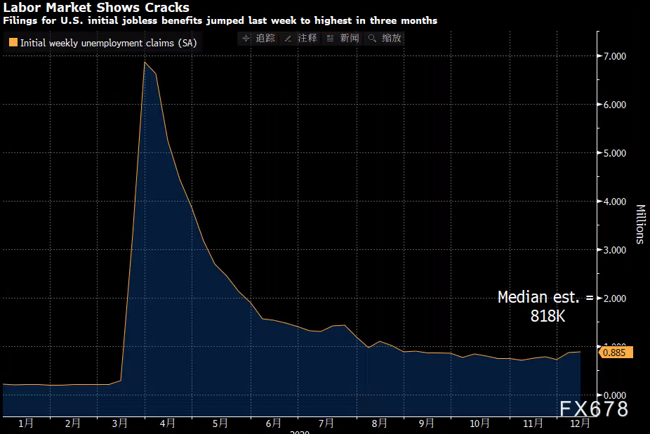 周四(12月17日)美国劳工部公布的数据显示,上周初请失业金人数升至三个月高点,投资者对此感到意外。有专家警告,投资者需要为2021年另一场衰退的“实际风险”做好准备。 QuillItlligc首席执行官DaillDiartioooth表示,由于许多小企业的损失是永久性的,失业率上升似乎成为一种趋势,2021年经济可能