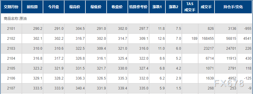 周四(12月17日)上海原油价格暴涨,主力合约2102创3月上旬以来高位至316.7元/桶,终盘收于314.7元/桶,涨12.6元/桶,涨幅4.17%。美油继续刷新九个月新高,逼近关键阻力位50,美国政府数据显示上周原油库存下滑,市场对美国疫情援助方案的乐观情绪也推动油价上涨。此外,美联储利率决议重申低利率政策,美元再创逾两