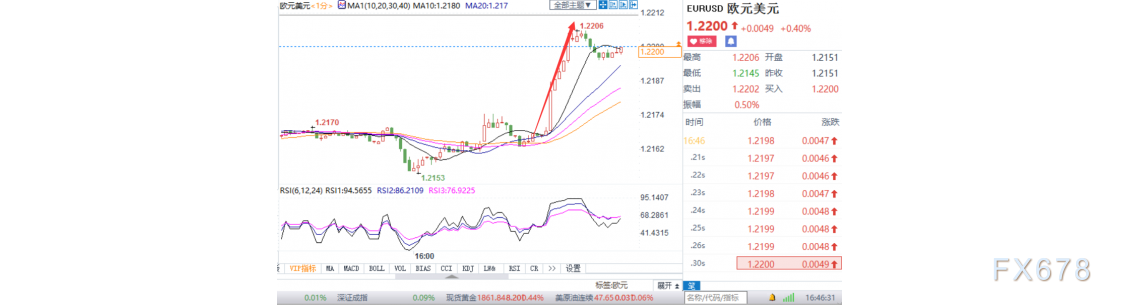 周三(12月16日)欧市盘中,欧元兑美元短线拉升逾点至2018年4月来新高1.2205,升破1.22整数关口,因稍早公布的德国及法国12月arkit采购经理人指数(I)初值均强于预期,其中德国12月制造业I初值创2018年3月以来最高值,大幅缓和了市场对近期德国等欧洲国家新冠疫情升级强化封锁带来的忧虑,此外FDA确认odra版疫苗