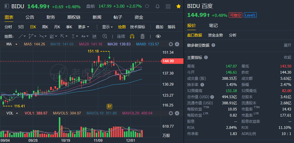 12月9日讯,瑞银将百度的股票评级从中性上调为买入,并将其目标股价从130美元上调至190美元。以JrryLiu为首的分析师表示,因产品改善、竞争环境趋稳,且较上年同期更为轻松,百度的核心营收(搜索和订阅广告)正转为正增长。百度管理层也更有可能通过股票上市、出售/剥离资产和回购等方式,为自动驾驶、云计算和智能音