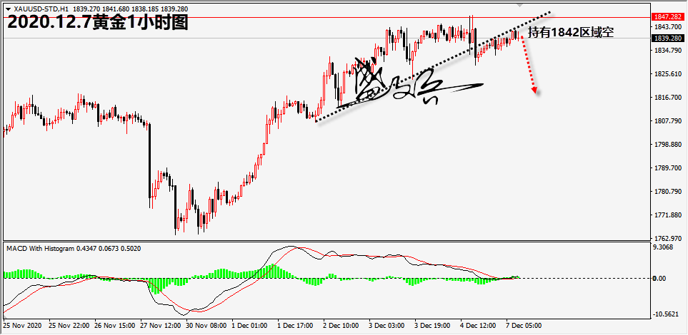 黄金早盘行情反弹,但是日内波动幅度有限,明显的反弹无力,与此前的强势上涨形成鲜明对比,所以欧盘我们还是继续持空看跌不变,依托1844阻力空! 有人问,此前一路多一路收割,现在为什么转空了,是不是黄金要再次开启波段下跌!从走势上来说,黄金依然是反弹上涨走势,但是动能衰竭,承压遇阻也是实实在在看