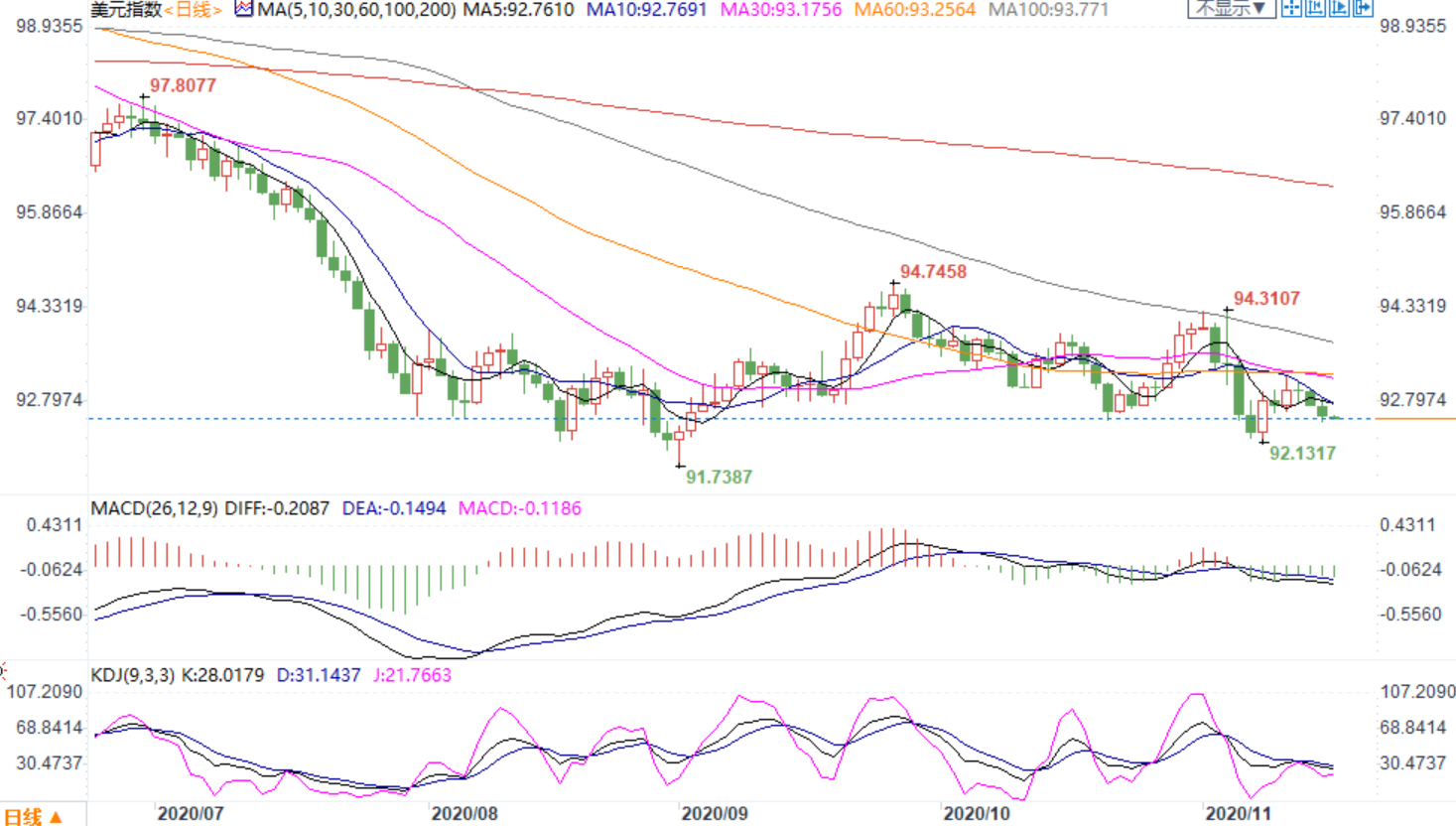 周二(11月17日)亚洲时段,美元变动不大,不过整体仍弱势,此前制药商odra表示,根据一项后期试验的初步数据,其实验性新冠疫苗在预防新冠病毒方面的有效性达到94.5%,成为第二家报告结果远好于预期的美国制药商。但对疫苗的乐观情绪基本上没有影响汇市,美元指数持稳在92.5附近。odra疫苗的一个关键优势是,它