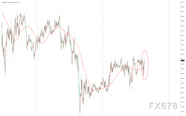 黄金日内震荡反弹,多头虚张声势,走了一天最终也没有突破1875的阻力,多头非常弱势,行情波动不大,我们还是维持此前的策略不变,1875下就是空! 黄金现在的走势非常简单,无非是大跌后的震荡修正,但是震荡也有强有弱,而现在的行情则是非常弱势,因为反弹遇阻1890后便一路走低,高点依次降低,今日的阻力就