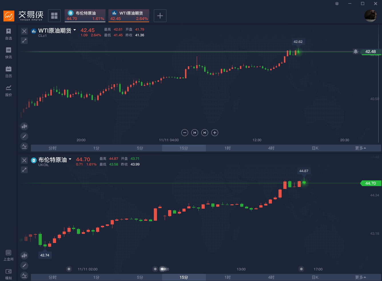 周三午后,两油继续涨近3%。 周三(11月11日)午后,两油持续上涨。WTI原油期货涨3%,报42.60美元/桶;布伦特原油期货涨近3%,报44.88美元/桶。 近日,受辉瑞疫苗利好消息的影响,油市恐慌情绪有所降温,资金快速涌入原油等风险类资产,油价疯狂上涨。周二,美国国家过敏暨传染病研究所所长福奇还表示,