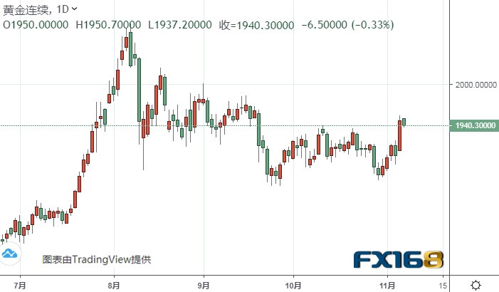 周五(11月6日)黄金T+D创三周半新高,白银T+D大涨4%!现货黄金探底回升至1940美元/盎司上方,美元指数继续承压,创9月2日以来的逾两个月新低,因拜登胜选的预期愈加升温,这不利于美元表现,而除了美国大选,晚间将迎来美国非农,投资者也应该加强关注。在美国大选结果仍不明朗之时,美联储选择按兵不动,重申新冠肺