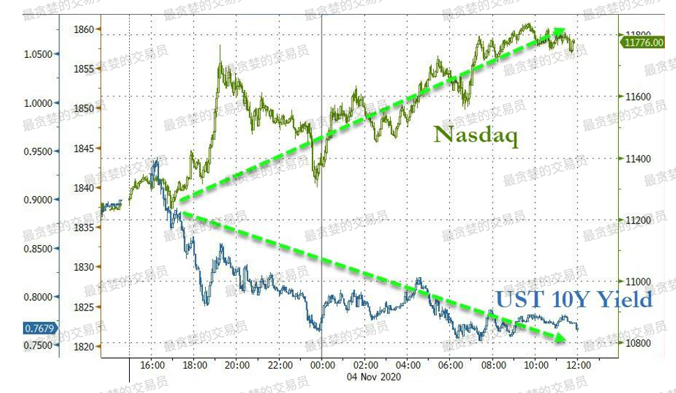 虽然最终结果尚未公布,但拜登当癣共和党控制参议院和民主党控制众议院似乎已经成为华尔街的一致预期,而这种结果整体而言对股市还是有利的。 美国总统大选日过后的第二天,虽然计票结果仍在胶着,谁是下任总统仍存在不确定性,但美股全线上涨。11月4日收盘,道琼斯工业平均指数上涨1.3%,至27847.66点,标普50
