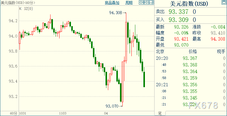 周三(11月4日),现货黄金承压,美元指数剧震逾1.3%,因美国大选计票情况显示,现任总统特朗普和民主党总统候选人拜登之间竞逐激烈,令此前市场押注拜登获得决定性胜利的预期落空。 北京时间20:20,现货黄金下跌0.15%至1906.03美元/盎司;COX期金主力合约下跌0.17%至1906.6美元/盎司;美元指数下跌0.21%至93.3