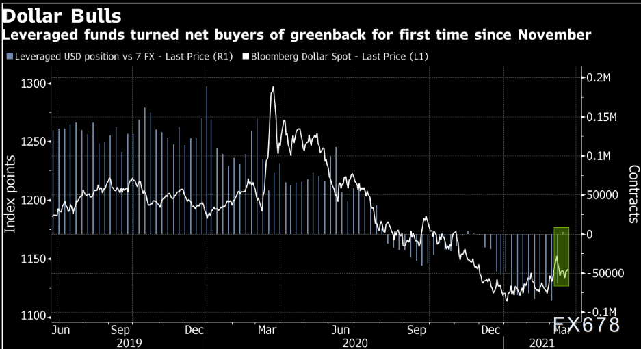最新数据显示,对冲基金放弃了做空美元。随着美国国债收益率飙升至疫情前的水平,他们自去年11月以来首次看涨美元。分析师认为,土耳其央行行长意外遭到撤换导致里拉暴跌,也提振了对避险资产的需求。 根据彭博汇总的美国商品期货委员会关于7种主要货币的数据,在截至3月16日的一周,杠杆基金转而成为全